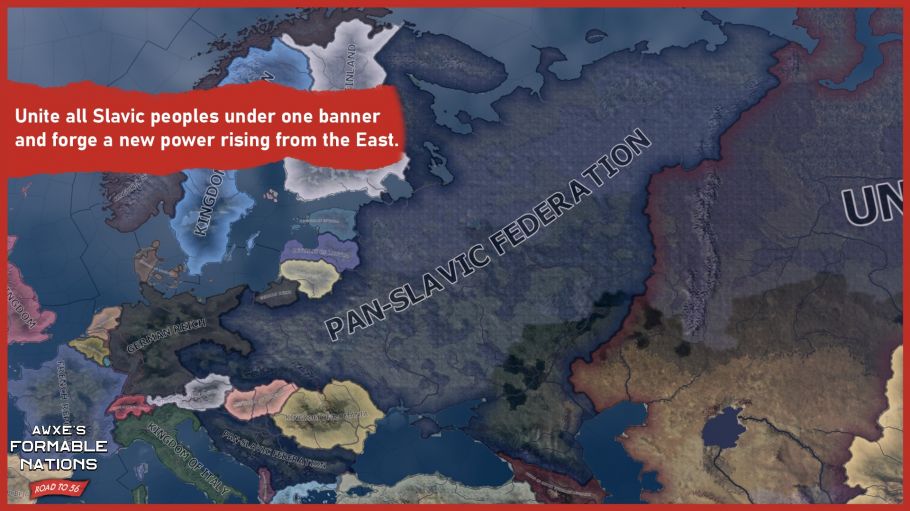 Это известный и любимый всеми мод Formable Nations, полностью переработанный и теперь на 100% совместимый с модом Road to 56. Он расширен, переведен, оптимизирован и дополнен совершенно новым, ранее невиданным, формируемым контентом.