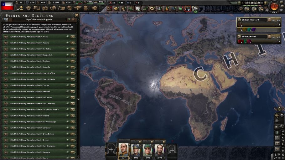 В базовой игре единственной страной, которая может создавать марионеток на основе решений, является Германия с ее рейхскомиссариатами. Этот мод пытается решить эту проблему, добавляя новых формируемых марионеток, которых могут создавать нации, если они занимают определенные государства. У недавно добавленных марионеток есть собственный уровень автономии под названием "Военная администрация", который отражает эффекты базовой игры "Рейхскомиссариат".