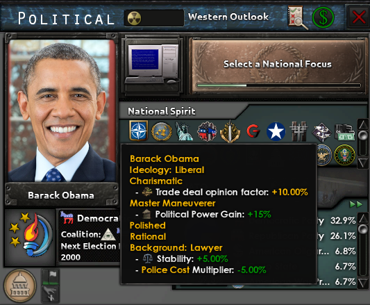 Этот графический подмод для Millennium Dawn представляет собой нефильтрованную визуальную переработку Соединенных Штатов, чтобы отразить более современную американскую политику с достаточным количеством лидеров, из которых вы можете выбирать. Предлагая вам более перспективную игру.