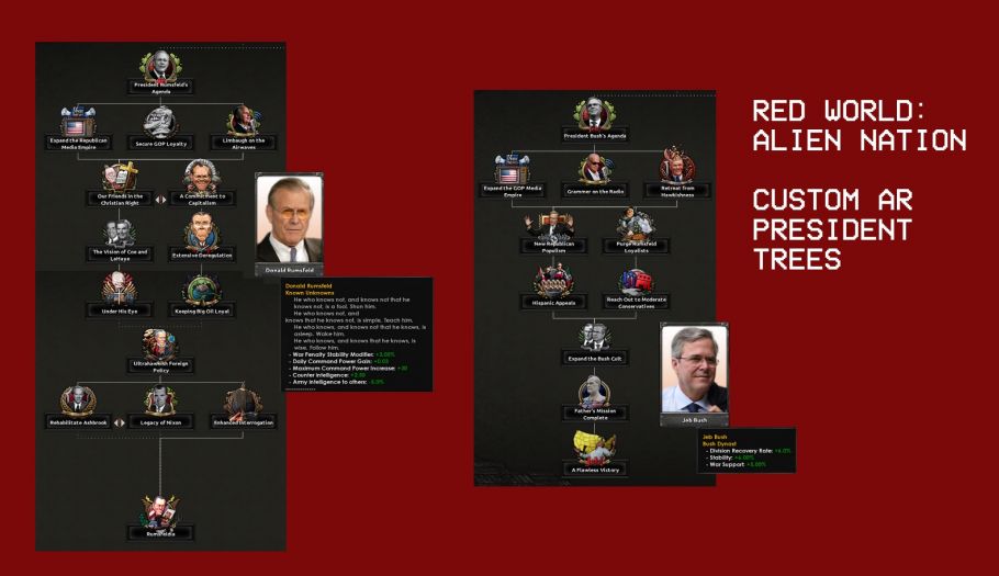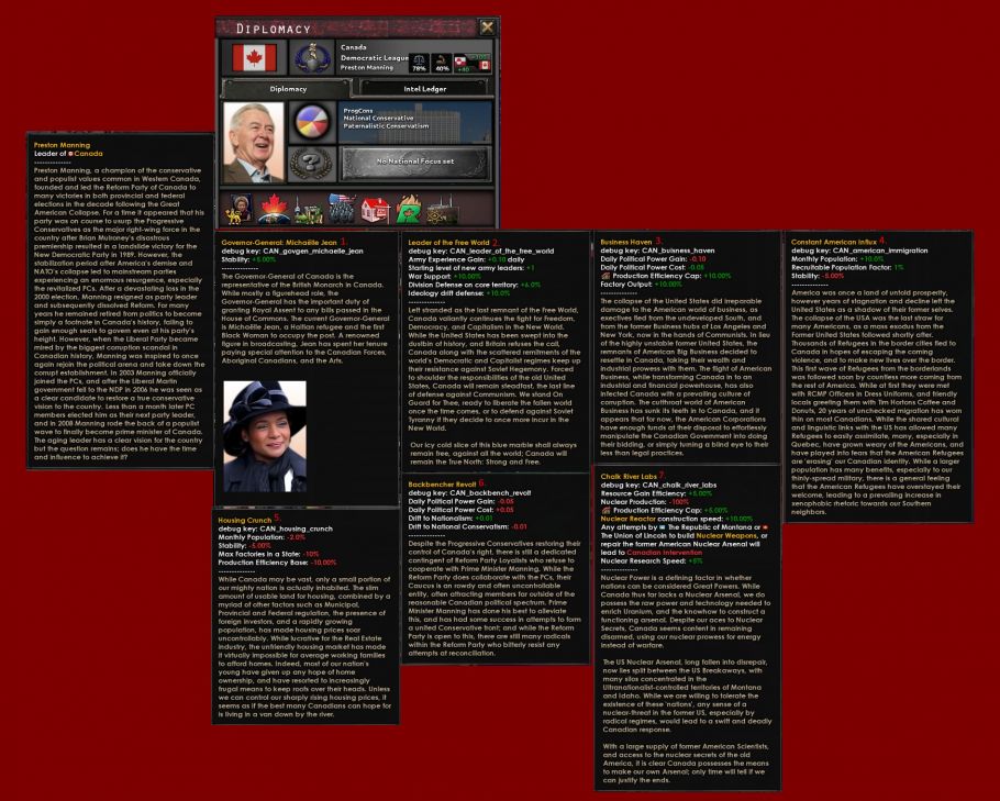 Red World: Risen from the Ruins добавляет полный контент для Канады и Германской Демократической Республики, включая более 400 фокусов, более 200 событий и более 500 элементов пользовательской графики для каждой страны.