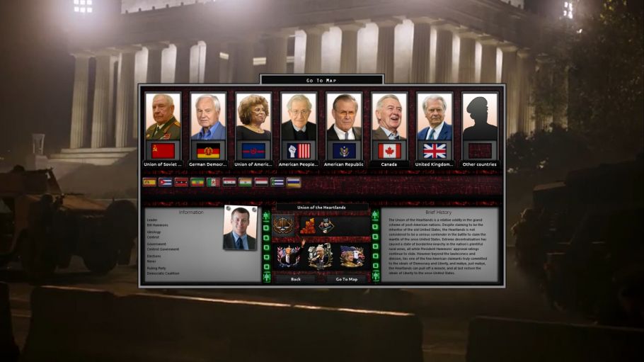 Этот мод является исключительно произведением спекулятивной фантастики и альтернативной истории и не предназначен для политического заявления. Мнения некоторых персонажей были изменены, чтобы соответствовать этому вымышленному сценарию, и эти измененные взгляды не следует рассматривать как отражение реальных ценностей этих людей.