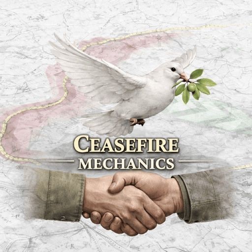 Ceasefire Mechanics представляет собой полностью запрограммированную, управляемую правилами систему «паузы войны», которая позволяет как игрокам, так и ИИ остановить конфликт, стабилизировать свои фронты, а затем возобновить ту же самую войну со всеми первоначальными участниками.