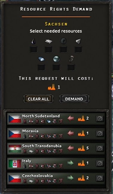 • CTRL + SHIFT + R: Переключить меню запроса ресурсов (один регион должен быть выбран на карте)